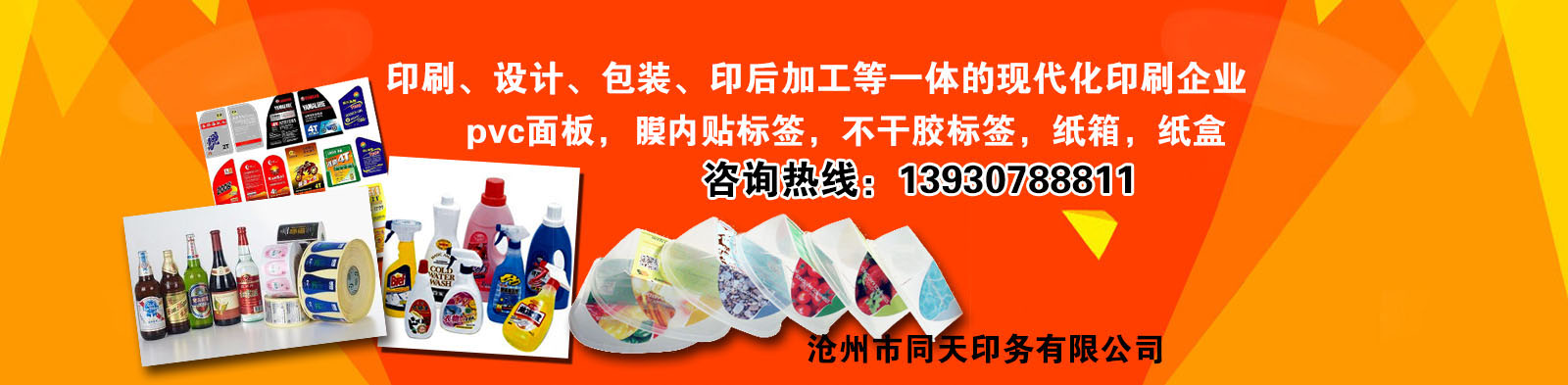 滄州市同天印務有限公司是集印刷、設計、包裝、印后加工等一體的現代化印刷企業。我公司成立于2002年,擁有世界先進印刷設備,專業生產加工吸塑紙卡,pvc面板,膜內貼標簽,不干膠標簽,紙箱,紙盒,防偽標簽等。公司產品遠銷海外,亞洲(日本、馬來西亞、新加坡、印度尼西亞)歐洲(烏克蘭、德國)大洋洲(新西蘭)北美洲(加拿大、美國、墨西哥)同天以其精美的印品和完美的售后服務在業界贏得較高的知名度。我公司尊崇“踏實、拼搏、責任”的企業精神,并以誠信、共贏、開創經營理念,創造良好的企業環境,以全新的管理模式,完善的技術,周到的服務,卓越的品質為生存根本,我們始終堅持用戶至上 用心服務于客戶,堅持用自己的服務去打動客戶。歡迎各界朋友蒞臨我公司參觀、指導和業務洽談......